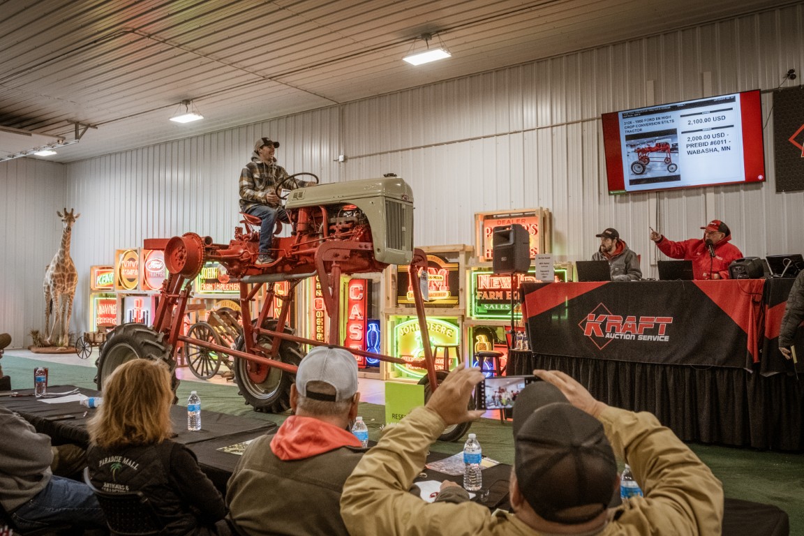 Kraft auctions offers a unique service to prep your items for our live drive-through style auctions. Seeing the tractors driving through the building gets everyone’s heart pumping and is one of the most exciting parts of our Bi-Annual Vintage Tractor Auctions! We have a team of top tier tractor mechanics and restoration specialists that know the ins and outs of all things tractors and vintage vehicles. From prairie tractors and automobiles from the turn of the century to late model muscle tractors, our team can put the effort into making sure your item is running and driving for auction day.
